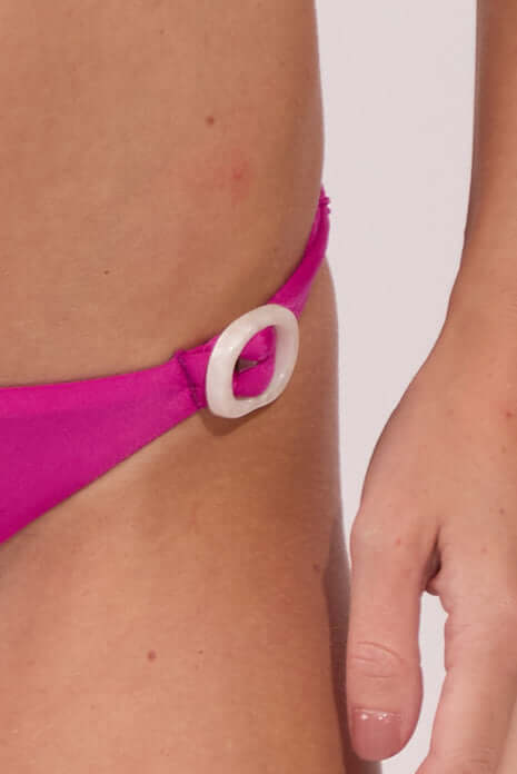 A calça karen é uma calcinha com detalhe de acessório em resina madrepérola nas laterais e recorte no bumbum que dá efeito UP, perfeita para quem quer renovar o bronze.