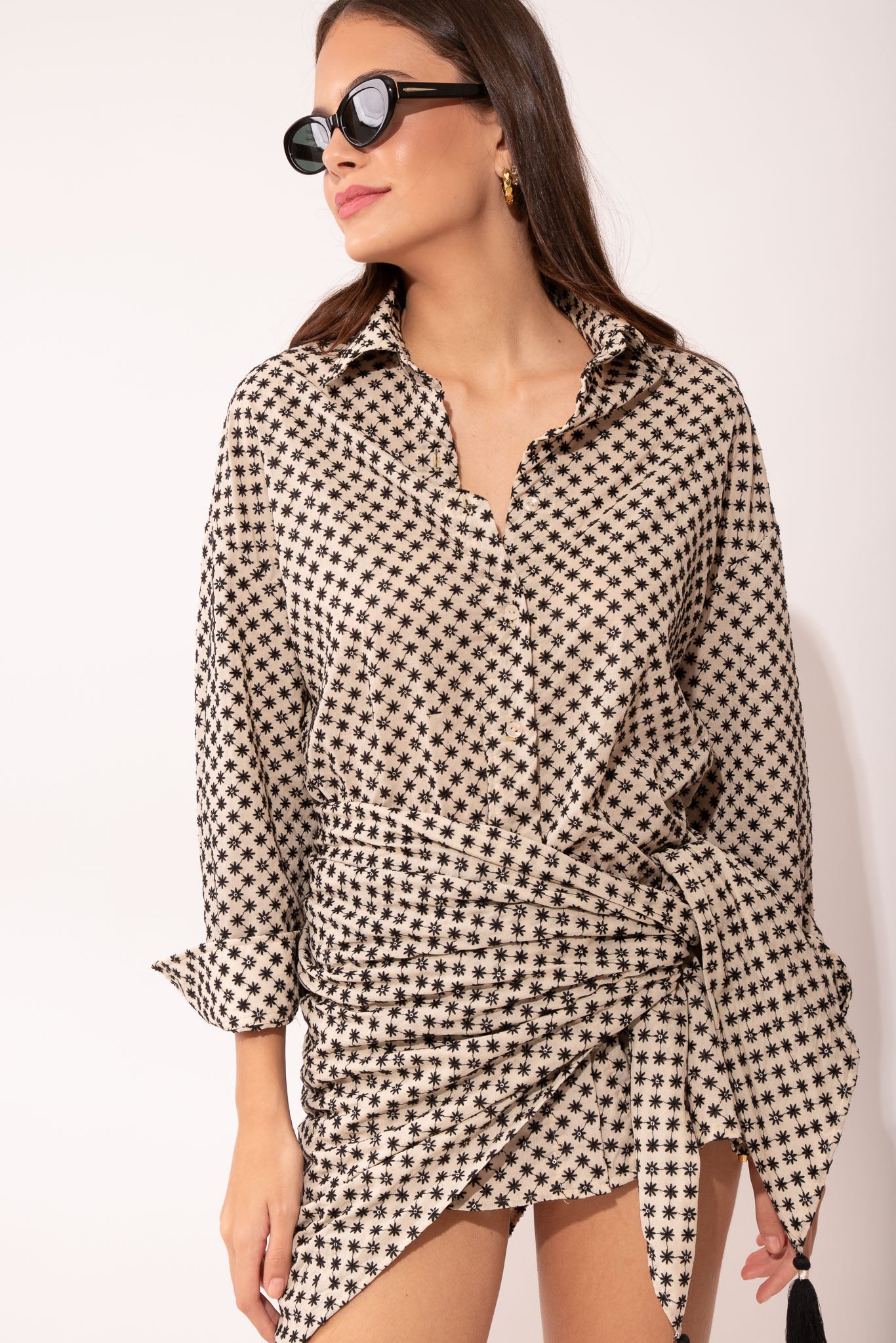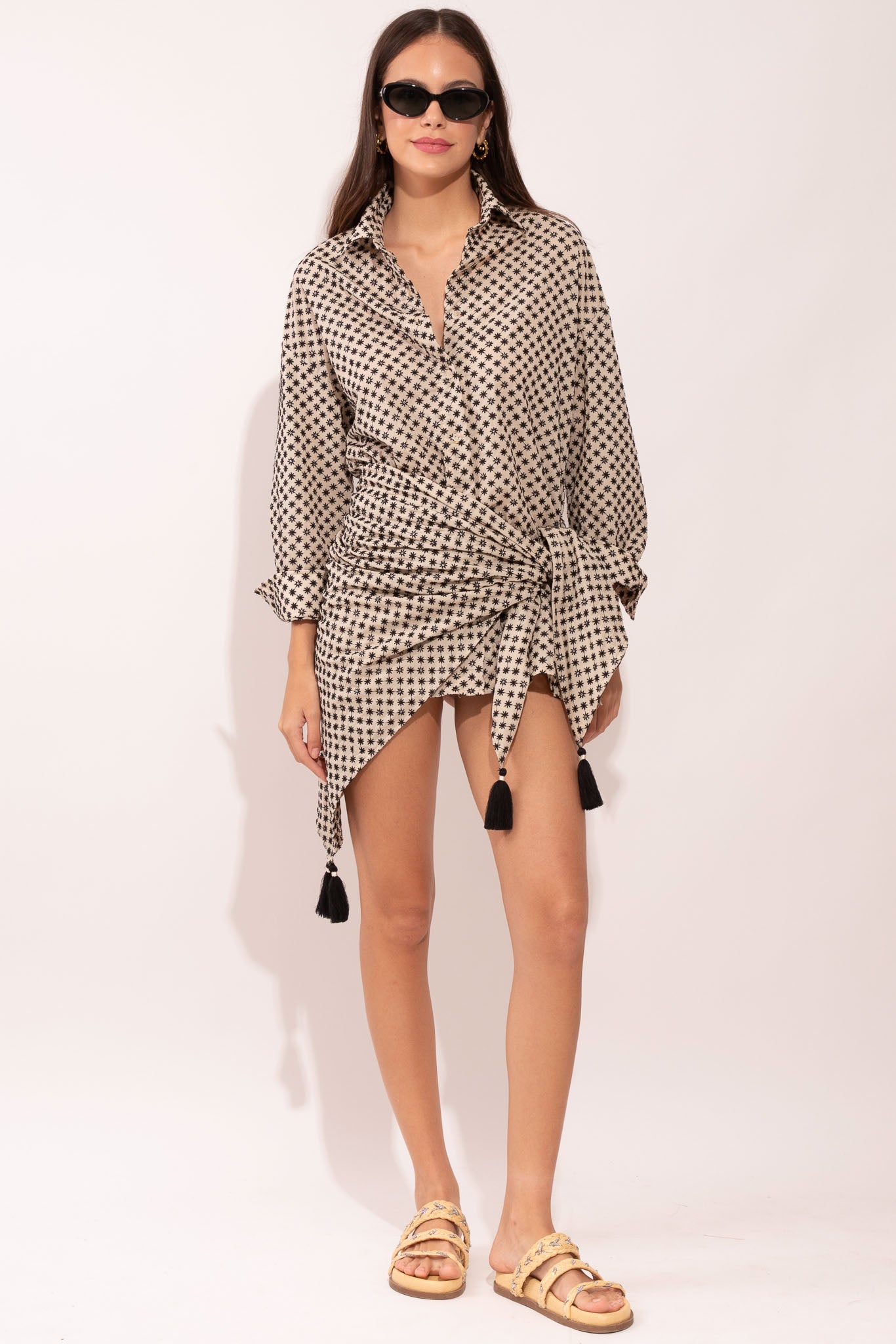 Lenço versátil em tecido bordado que pode ser usado como top tomara-que-caia, saia pareô ou faixa de cabelo. Detalhe de tassels pretos nas pontas traz charme extra ao styling. Um coringa que permite mil combinações.